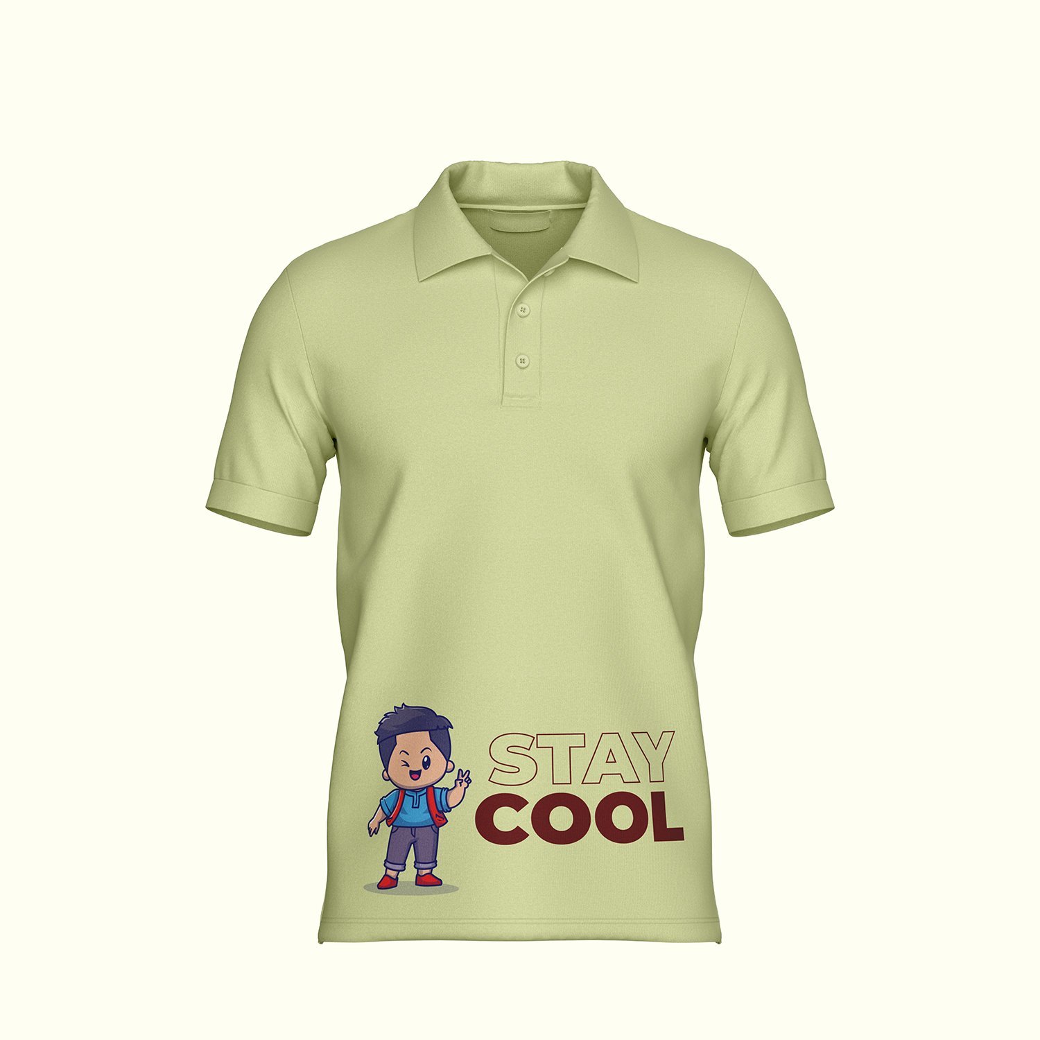 Stay stylish with the "Stay Cool Collar T-Shirt" by it’s Crazy. Featuring a chic collar, a cute illustration, and the tagline "Stay Cool", this unisex t-shirt offers luxurious comfort and a modern design, perfect for every occasion.